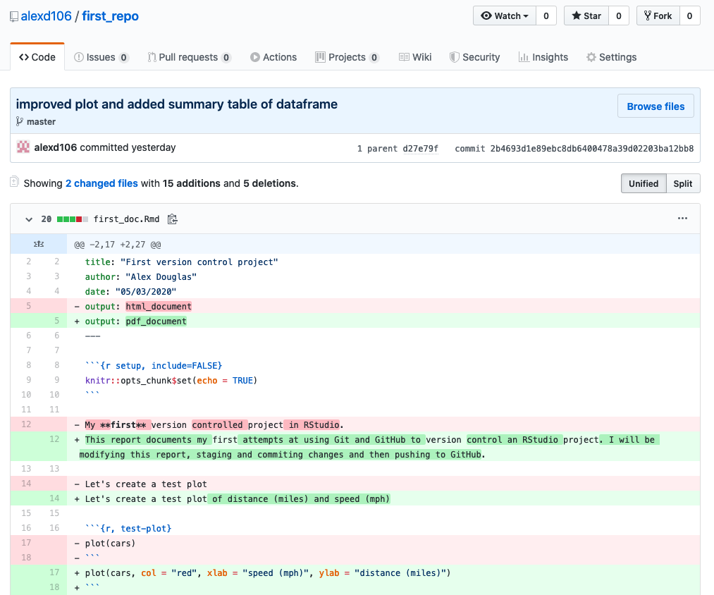 To view the changes in first_doc.Rmd click on the file name for this file.