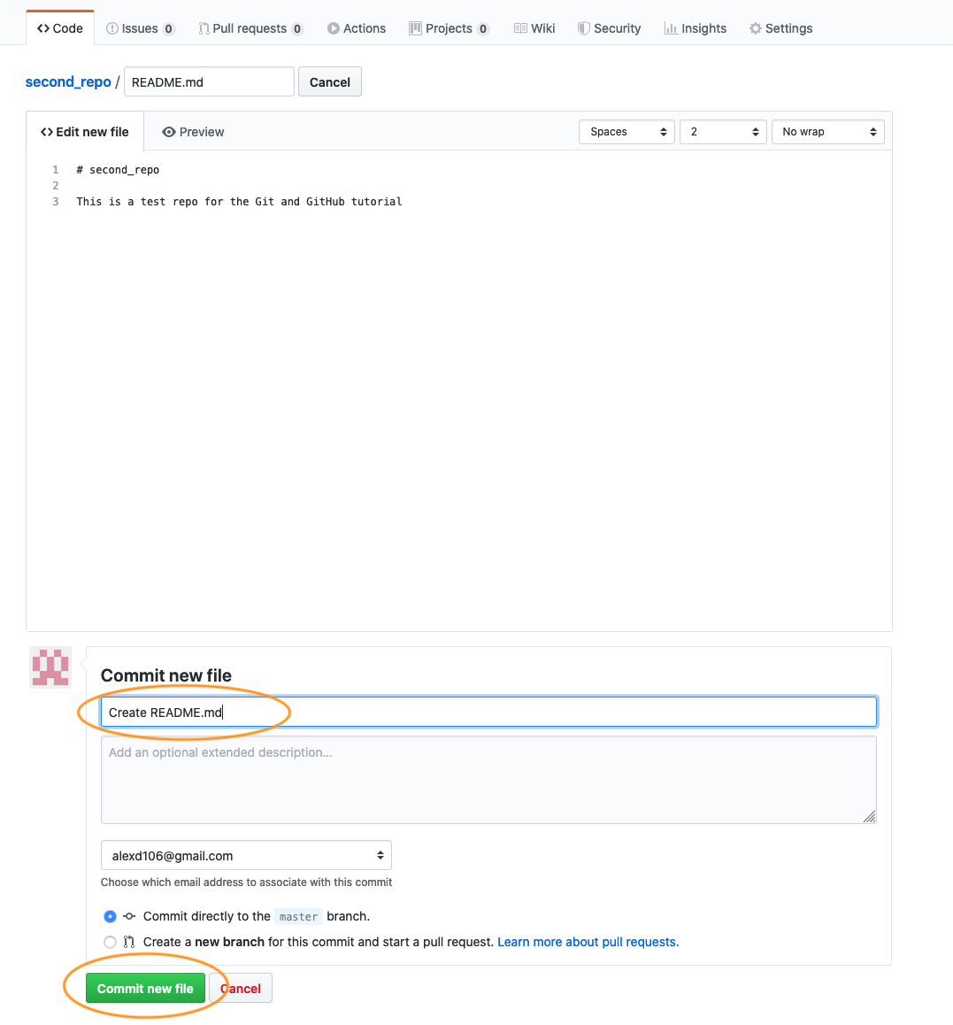 Now write a short description of your project in the <> Edit new file section and then click on the green Commit new file button.