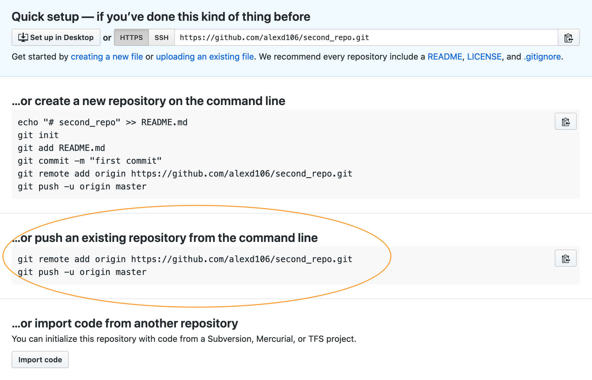 git remote add origin https://github.com/alexd106/second_repo.git