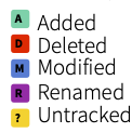 Following our workflow, we now need to stage these files. To do this tick the boxes under the ‘Staged’ column for all files. Notice that there is a status icon next to the box which gives you an indication of how the files were changed. In our case all of the files are to be added (capital A) as we have just created them.