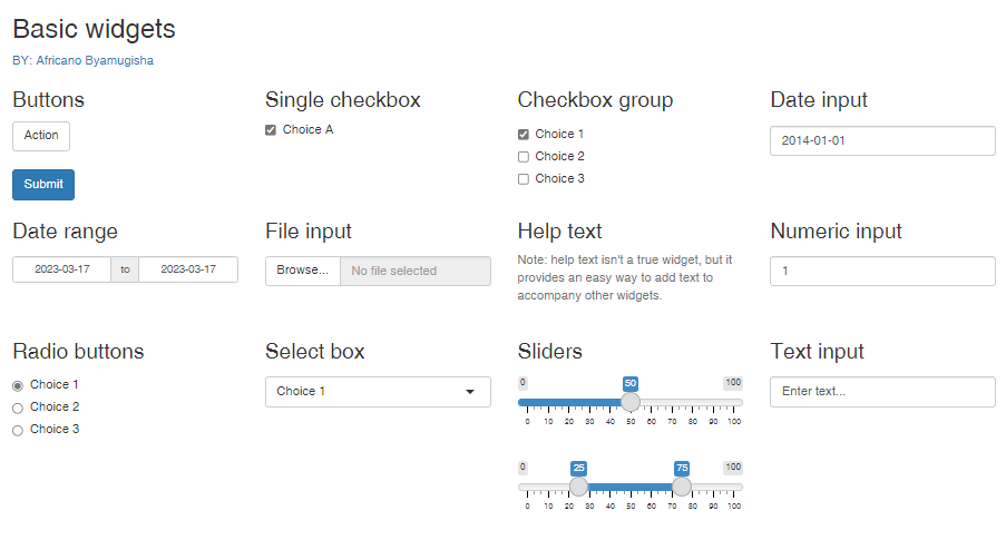 The following are standard Shiny input widgets (click the image below to view a live app demostration)